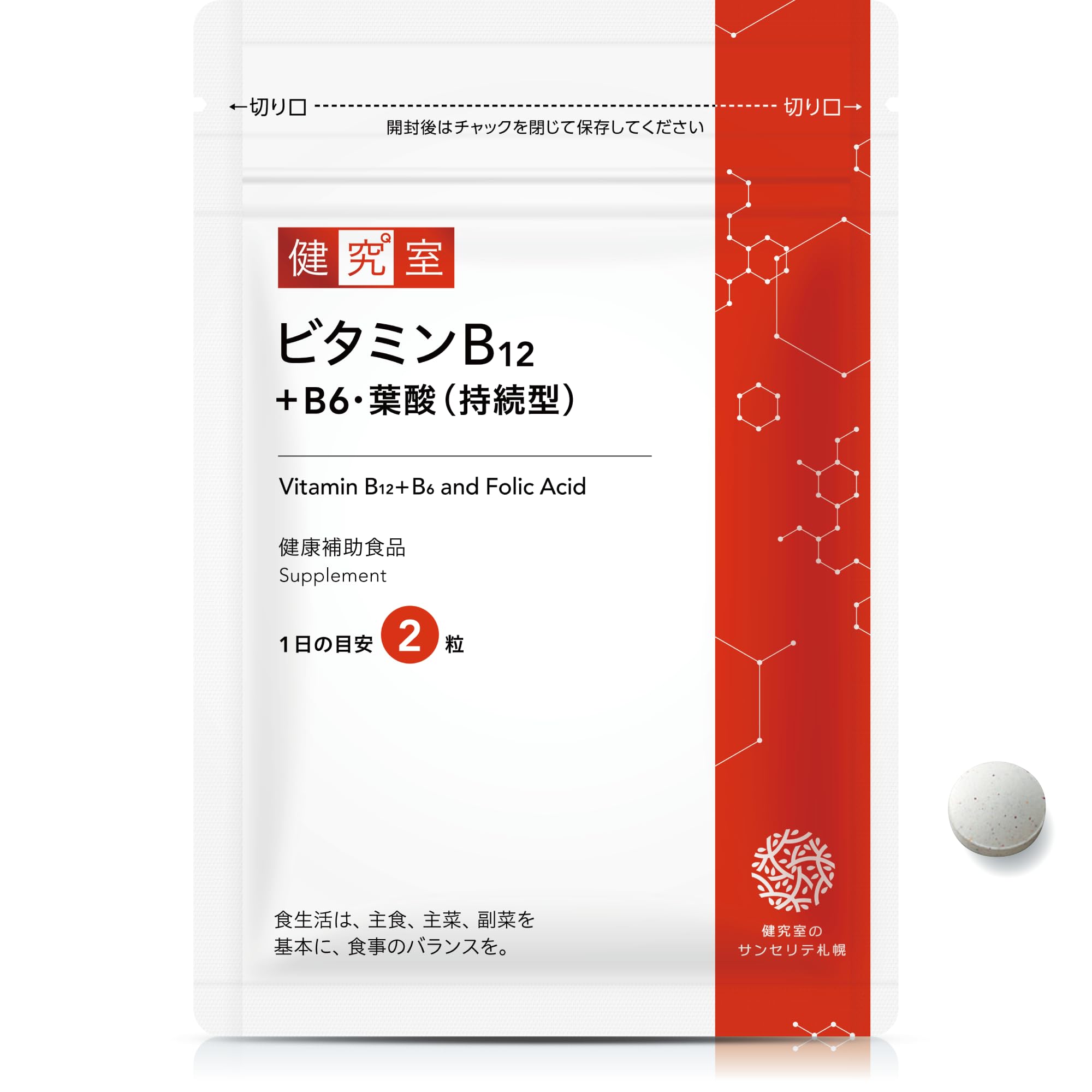 【送料無料】ビタミンB12+B6・葉酸(持続型) サイズ:60粒 (x 1)