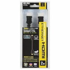 プラグ:HDMIプラグ(Aタイプ、19ピン、デジタル映像/音声/制御信号) 伝送速度:10.2Gbps ケーブル長:2.0m カラー:ブラック