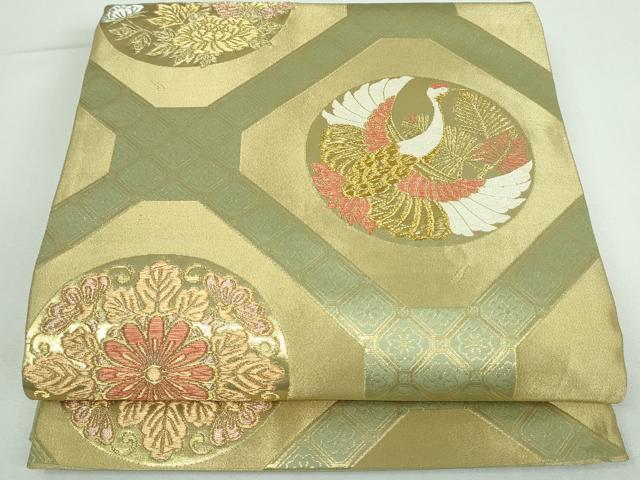 平和屋着物◎六通柄袋帯 唐織 蜀江飛鶴花松文 金銀糸 正絹 逸品 DAAT0106ob