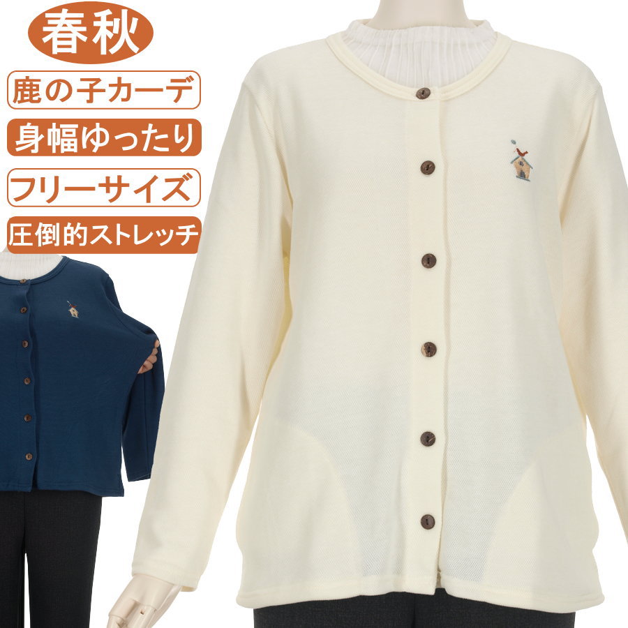 洗練された鹿の子ワンポイント。綿混紡の綺麗めカーデです。圧倒的ストレッチと柔らかな生地で脱ぎ着が楽々!やさしい肌触りがうれしい!しっかりとした生地がとっても素敵です!