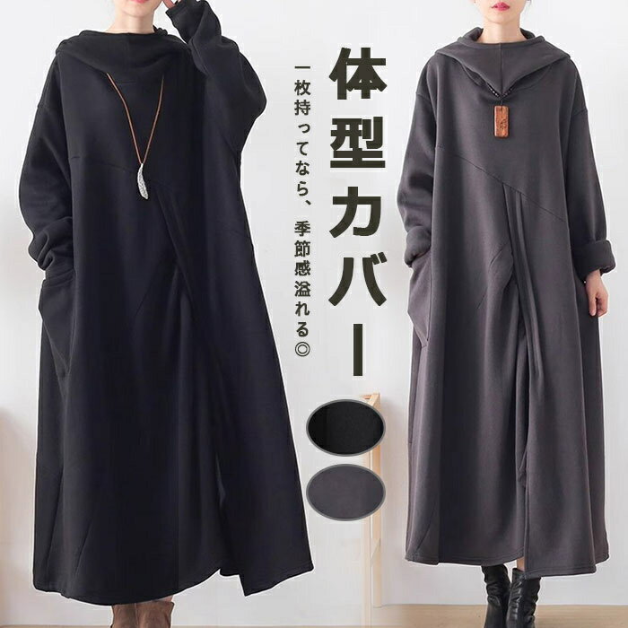 ワンピース マキシワンピース ブラック ワンピース マキシ丈 ロング ニット チュニック 体型カバー 秋冬 ロング ワンピ プチハイネック 防寒 ゆったり