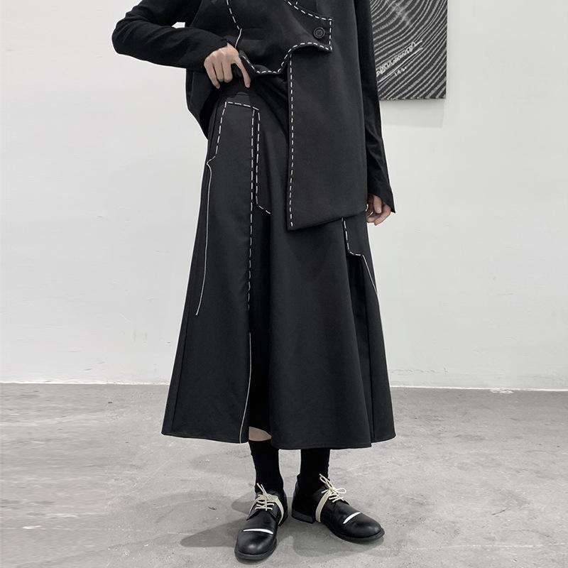 予約商品 スカート ロング 配色切替 バルーンシルエット ドローストリング ウエストゴム ブラック 大きいサイズ