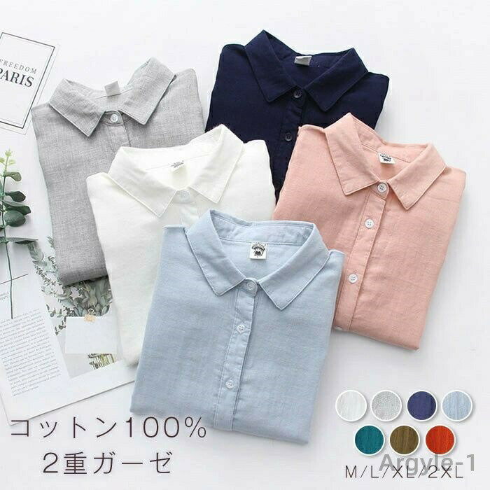 【送料無料】ビジネス オフィス OL 通勤 無地 ガーゼシャツ コッ