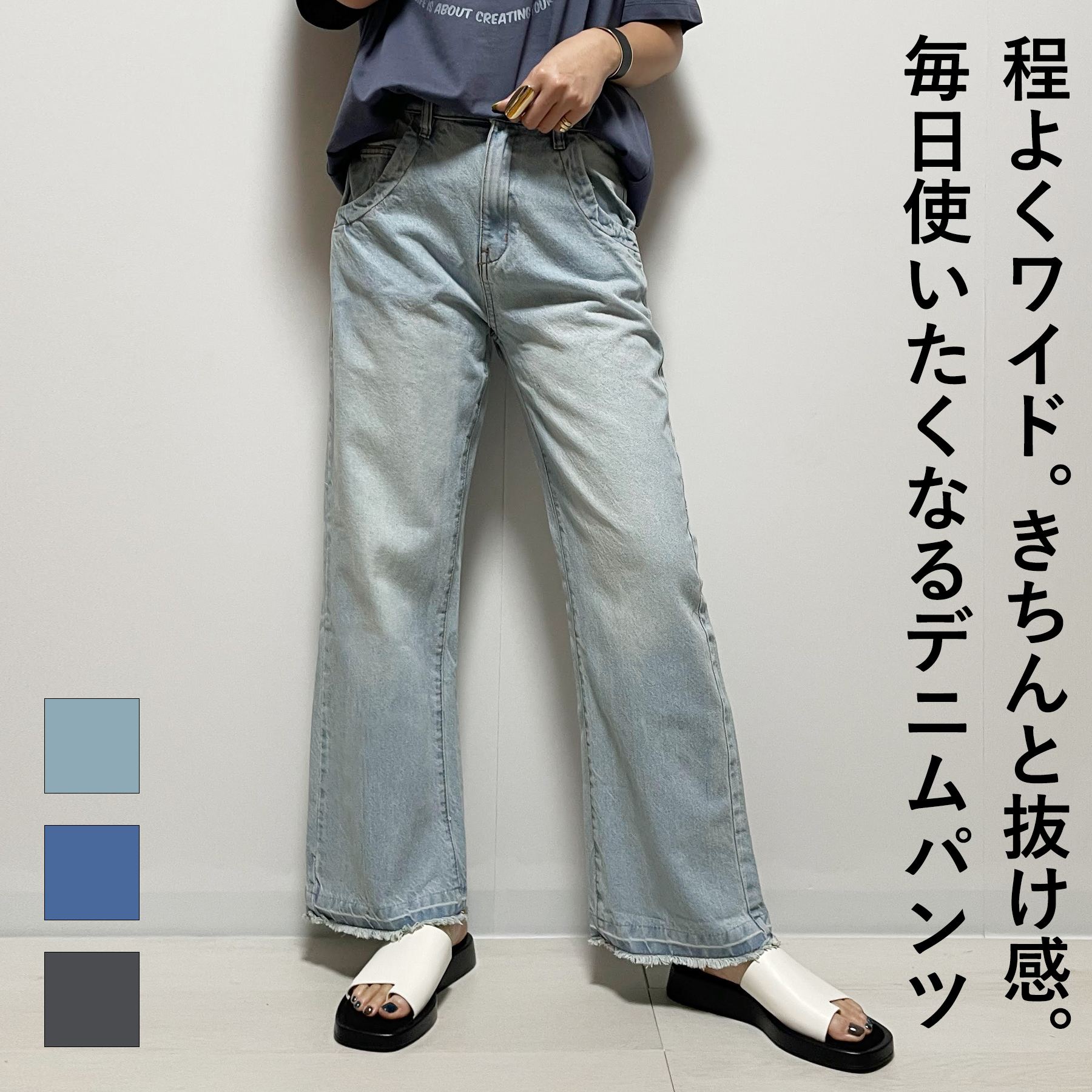 レディース デニムパンツ ストレート フィット ハイウエスト スリム効果 小柄対応 ワイドレッグ ロング丈 デニム素材 綿混 伸縮性 快適 カジュアル 普段使い 秋冬