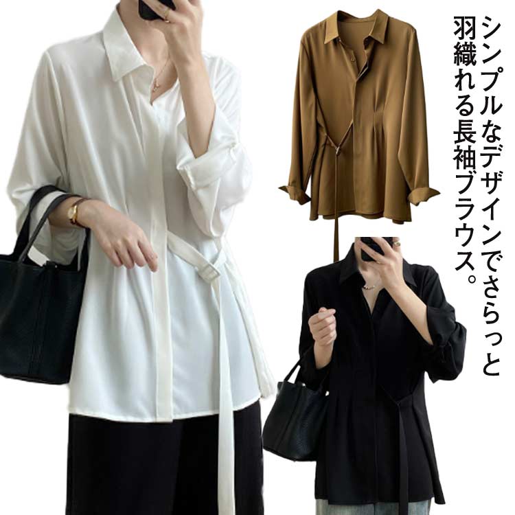 シンプル ロングシャツ Yシャツ おしゃれ OL オフィス OL ビジネス 長袖ブラウス