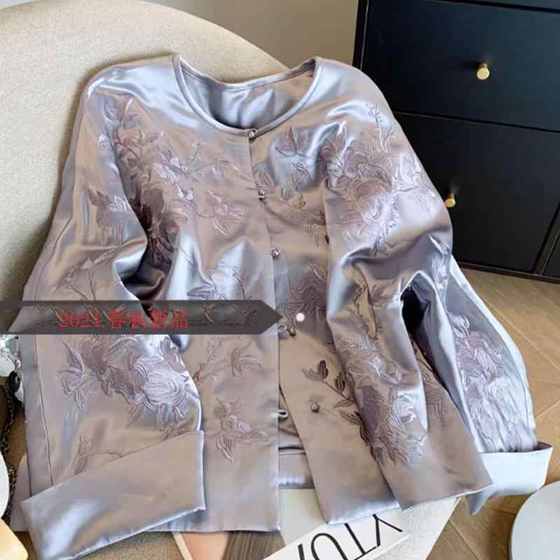 ショートアウター レディース 春 レトロ 薄手 重厚刺繍 アセテートサテン 中式 高級感 普段使い 軽量