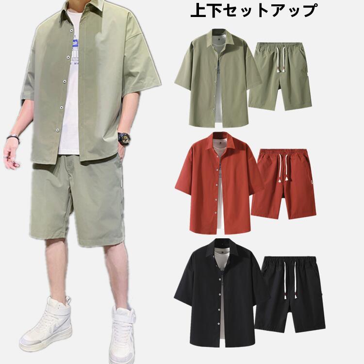 セットアップ サマースーツ メンズ 上下セット 半袖 サマーセット 大きいサイズ ショートパンツ モード系 ハーフパンツ 半ズボン 韓国ファンション メンズファンション