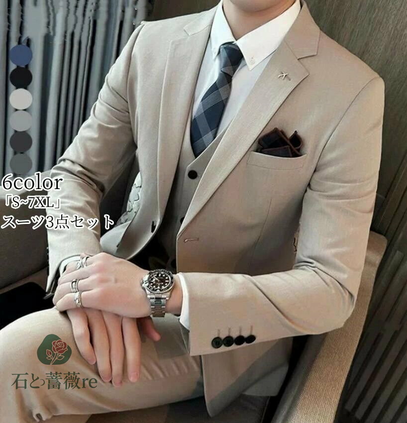 品質良い スーツ メンズ スリーピース タキシード 紳士服 礼服 メンズスーツ フォーマルスーツ ビジネス キャリア リクルート 通勤 オフィス 就活 面接 カジュアル 上品 お呼ばれ