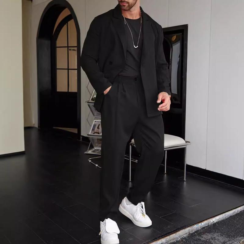 リクルート ビジネス メンズ 黒の シャツと ズボンの スーツ KTV 仕事 カジュアル メンズ フォーマルウェア 面接 ビジネス 就職 卒業 式 長袖 白