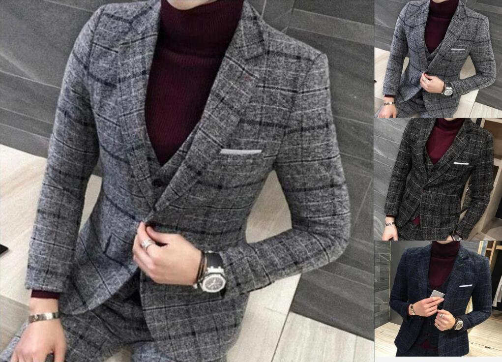3ピーススーツ メンズ チェック柄 スリーピーススーツ 3点セット ビジネススーツ フォーマル 紳士服 結婚式 通勤 スリム