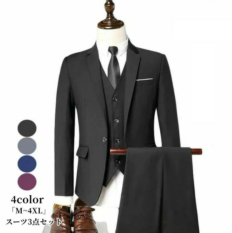スーツ3点セット 「M~4XL」メンズスーツ スリーピース 長袖スー