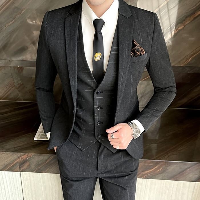 Newly デザイン 3-Pieces Men Blazer Suit Set Man Male Tuxedo Trouses Pants Men Slim Fit Forma