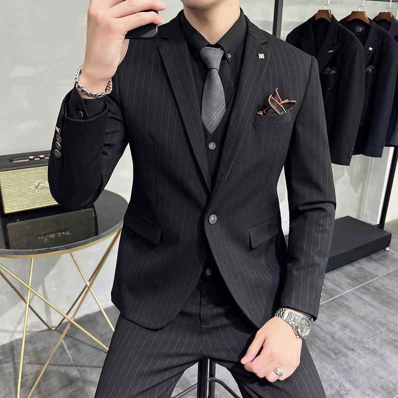 メンズスーツ オールシーズン スリムスタイル 3ピーススーツ 2次会 メンズ ビジネススーツ スリーピース ベスト付 シングルスーツ 成人式 通勤 スリム 洗えるスラックス ベスト 秋冬春