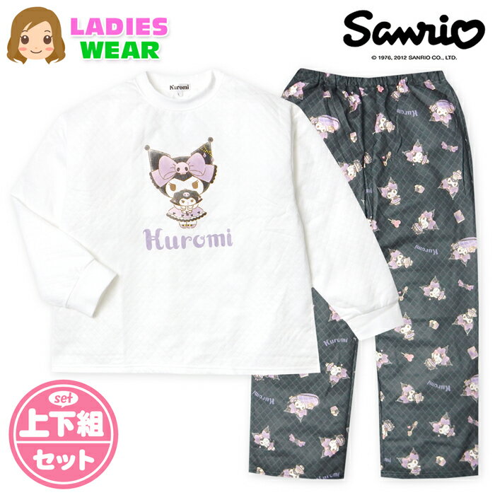 【送料無料】婦人 レディース ニットキルト 長袖 パジャマ かぶり 上下組 Sanrio サンリオ クロミ あったか素材 保温性 ゆったりシルエット 総柄 M L yg-3066b-bk