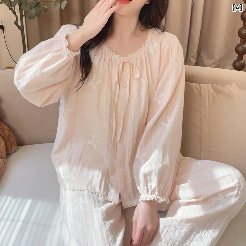 レディース パジャマ スウェット 上下 蝶 結び プリントの ラウンドネックカーディガン 春の 長袖 綿は プリンセスの 部屋 着 パジャマと して 着用 できます。