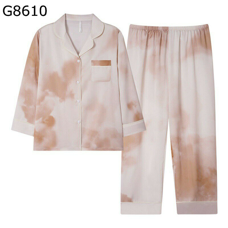 春夏 レディース パジャマ ルームウェア シルク調 薄手 レーヨン 滑らか 肌に優しい 長袖 ロングパンツ 上下セット カジュアル 2点セット 部屋着 寝巻き ナイトウェア 通気性 大きいサイズ