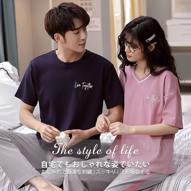 ペアパジャマ 半袖 ペアパジャマ 夏 パジャマ カップル