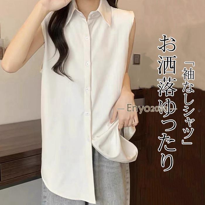 ノースリーブ Yシャツ ブラウス レディース シャツ 袖なし シンプル タンクトップ