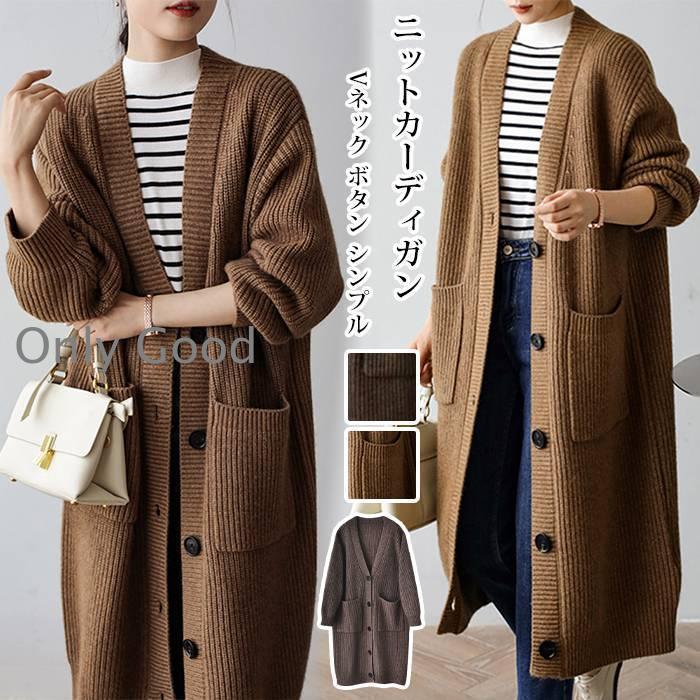 ニットカーディガン レディース カーディガン ニット ロング丈カーディガン 左右ポケット