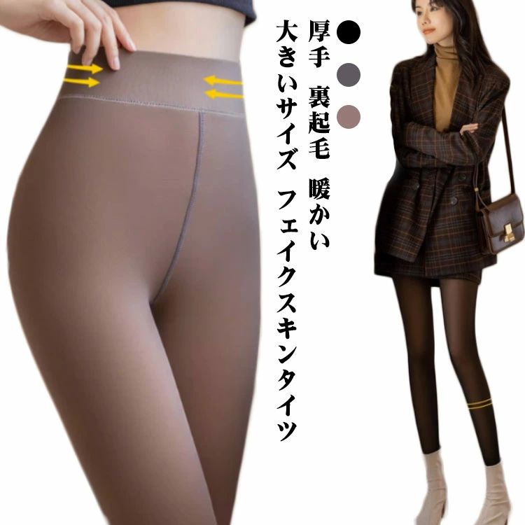 フェイクスキンタイツ レディース 裏起毛タイツ 暖かい 大きいサ