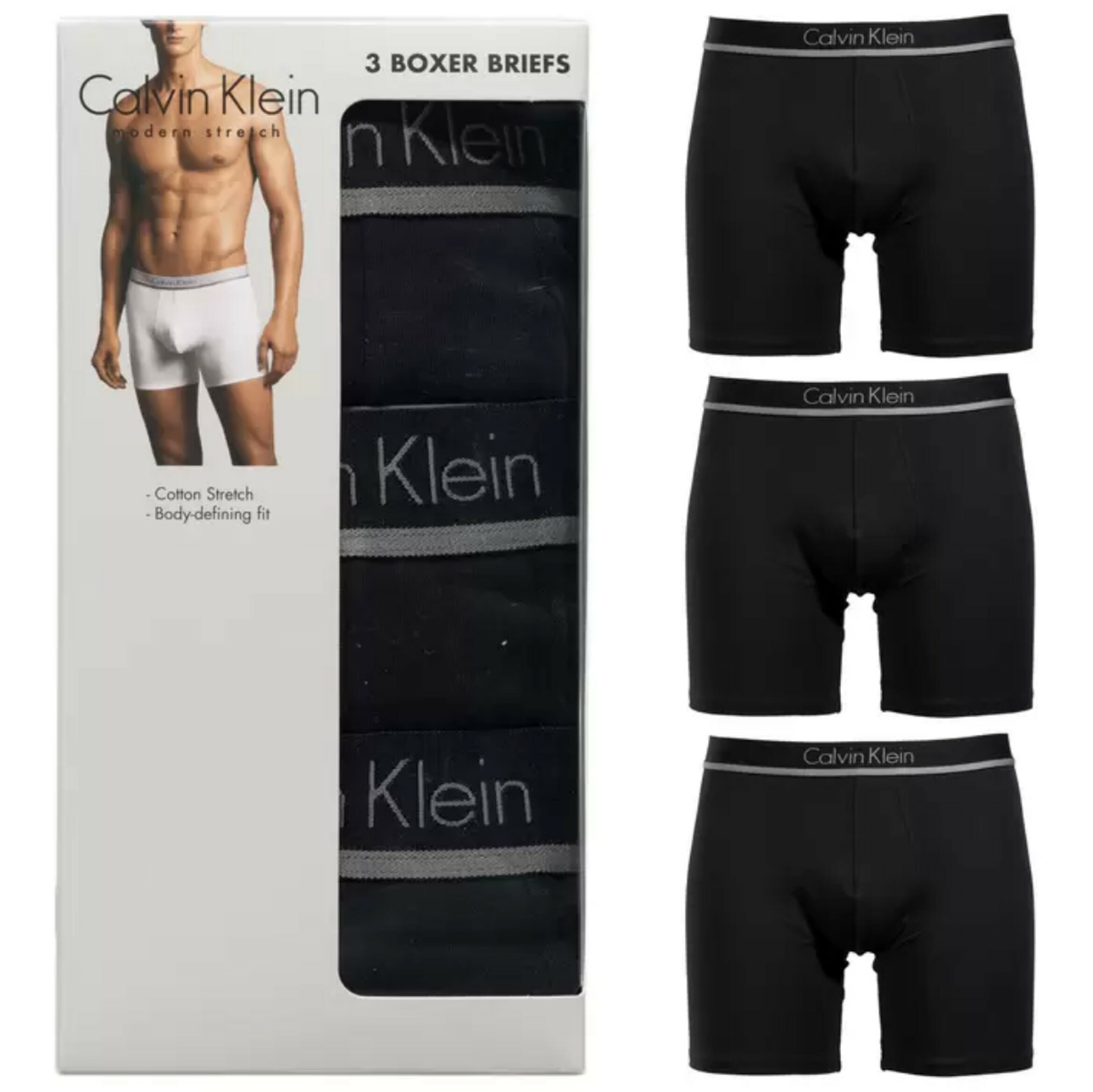 【お得 3枚セット!】カルバンクライン メンズ ストレッチ ボクサー パンツ M / L サイズ ブラック Calvin Klein Mens Modern Stretch Boxer プレゼント 快適な穿き心地 ストレッチ素材 コットン 誕生日 プレゼント 父の日