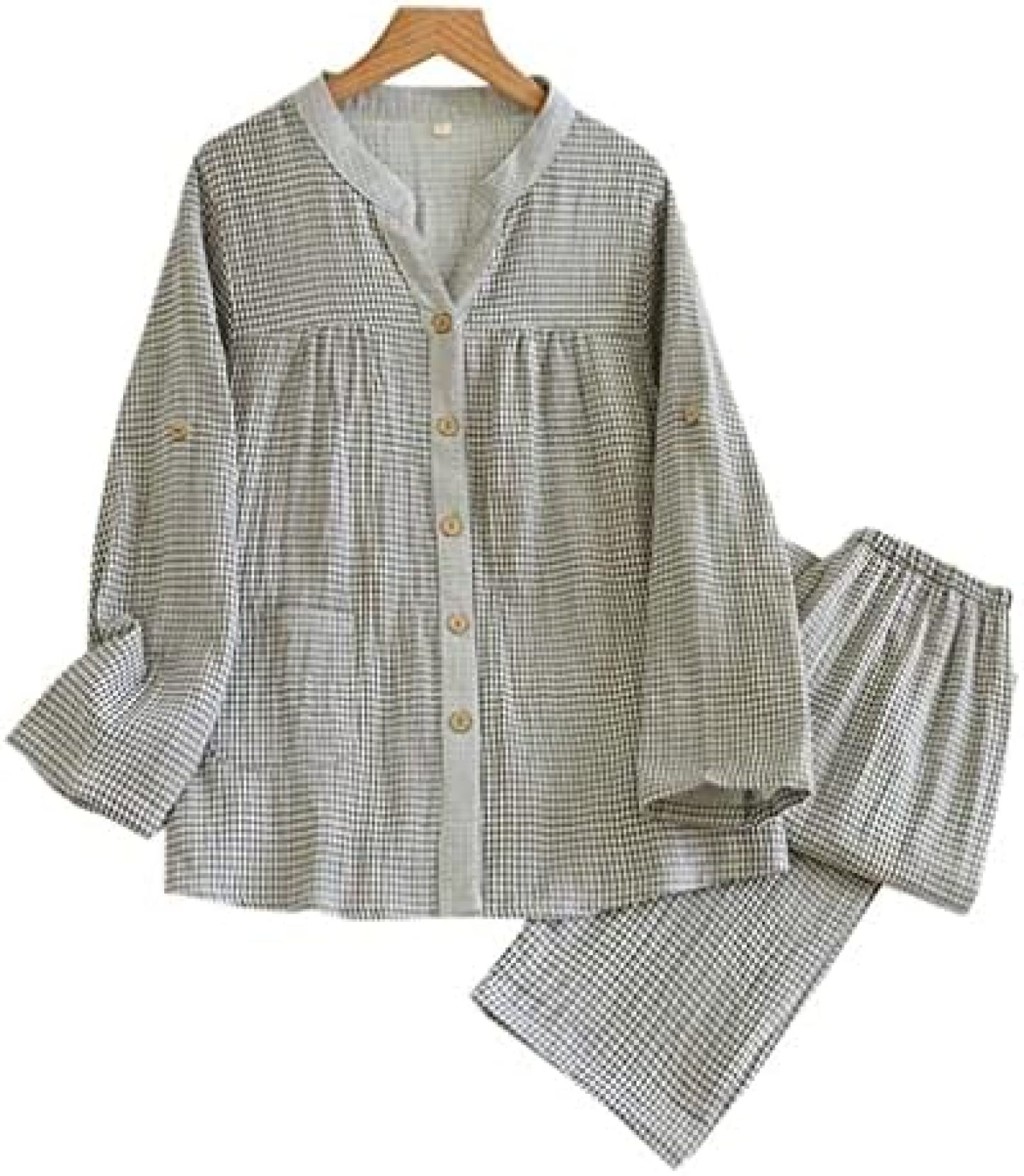 パジャマ レディース 綿100 二重ガーゼ チェック柄 シンプル ルームウェア 長袖 上下セット 長ズボン 秋用 春 部屋着 前開き 便利服 柔らかい 速乾 吸汗 ふんわり 寝巻き 婦人服 プレゼント
