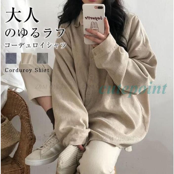 コーデュロイシャツ シャツ ブラウス コーデュロイシャツ 秋 レディース オーバーサイズ ドロップショルダー 大きいサイズ