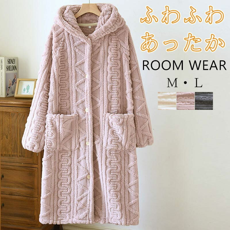ルームウェア カーディガン レディース ロング丈 もこもこ パジャマ 長袖 前開き ロングカーディガン 秋冬 フード 部屋着 ワンピース ロングカーデ ガウン ナイトウェア 寝巻き 上着