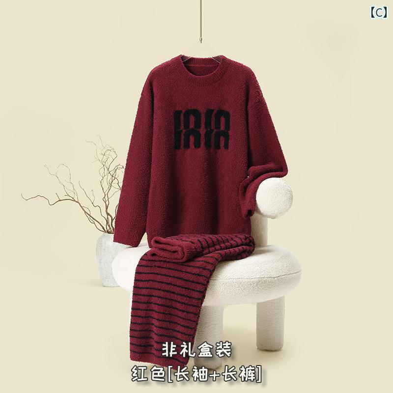 レディース パジャマ スウェット 上下 女性用 パジャマ 秋冬 2024 ハー フ エッジ ベルベット 裏起毛 厚手 スイート アウターウェア ホームウェア スーツ ギフト ボックス