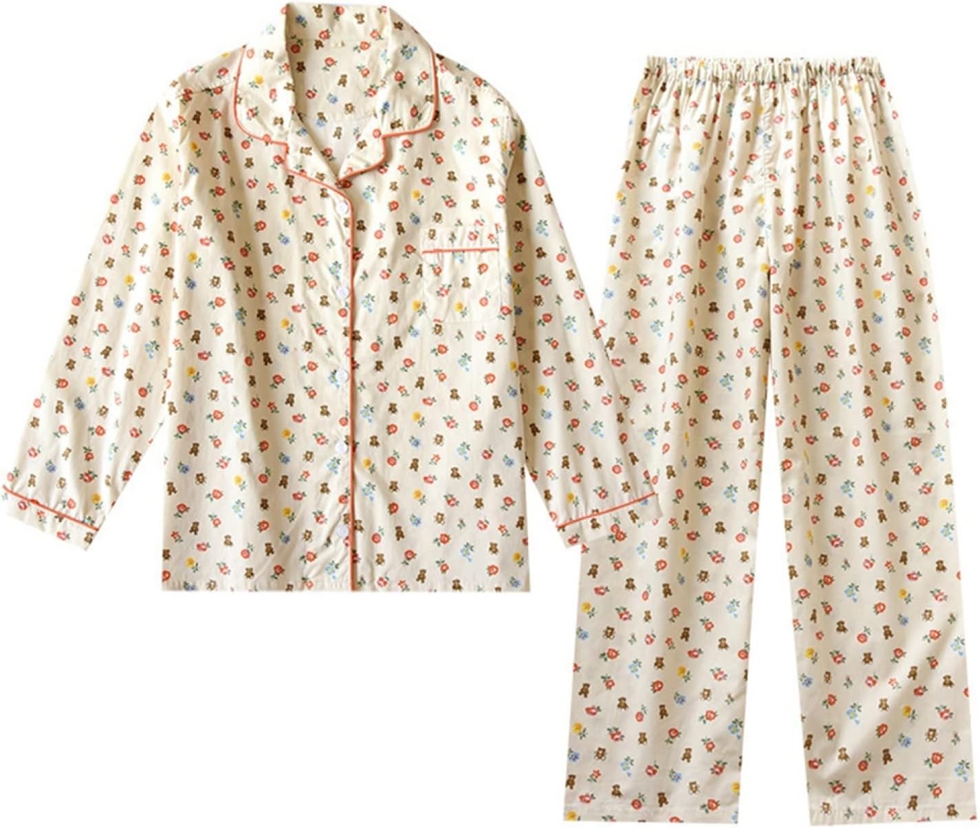 薄手 春秋 レディース パジャマ 長袖 長ズボン 上下セット ルームウェア 綿 部屋着 前開き 四季用 便利服 中老年パジャマ ナイトウェア おしゃれ 小花柄 寝間着 着心地 ゆったり M〜XL