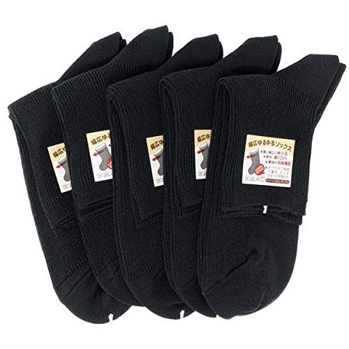 [レモコロ] 日本製 ソックス 消臭機能 超幅広ゆるゆる綿の靴下 ハーフ丈 5足組 22-24cm 24-26cm 26-28cm 28-30cm ブラック 5足