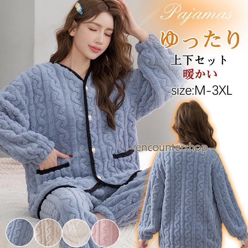 パジャマ レディース ルームウェア 上下アップ モコモコ ふわふわ フランネル ゆったり 部屋着 長袖 長ズボン 可愛い 寝巻き 秋冬 防寒 暖かい