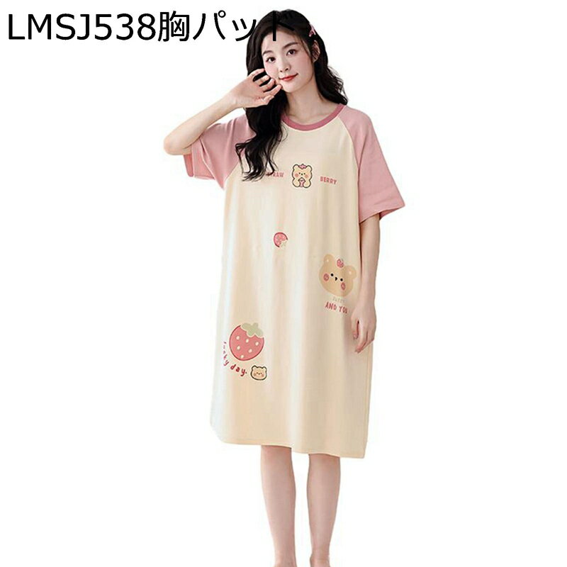 ワンピース パジャマ クマ柄 半袖 夏 レディース 寝巻き パッチワーク カップ付き ナイトウェア 寝間着 Tシャツ ネグリジェ かわいい ゆったり 体型カバー ロング丈 シンプル 柔らかい 吸汗 昼寝着 母へ