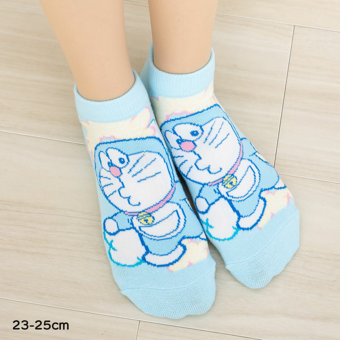 ドラえもん 全身柄 スニーカー丈ソックス 水色 23-25cm レディース 靴下 福助 fk-380-25c1-780