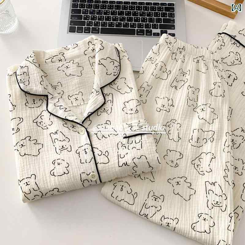 パジャマ 上下 薄手 春秋 レディース 韓国 綿の 二 重 ガーゼ パジャマ 長袖 カジュアル そして 家 着と して 外で 着る ことが できます
