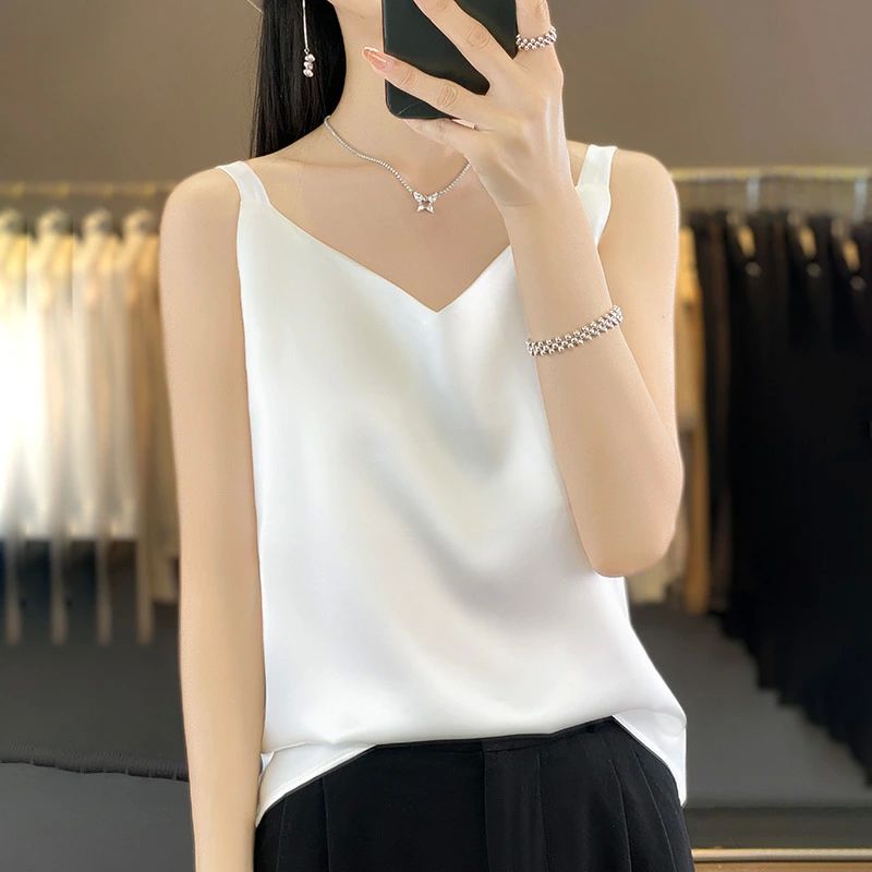 キャミソール サテン 下着 スーツ インナー Vネック タンクトッ