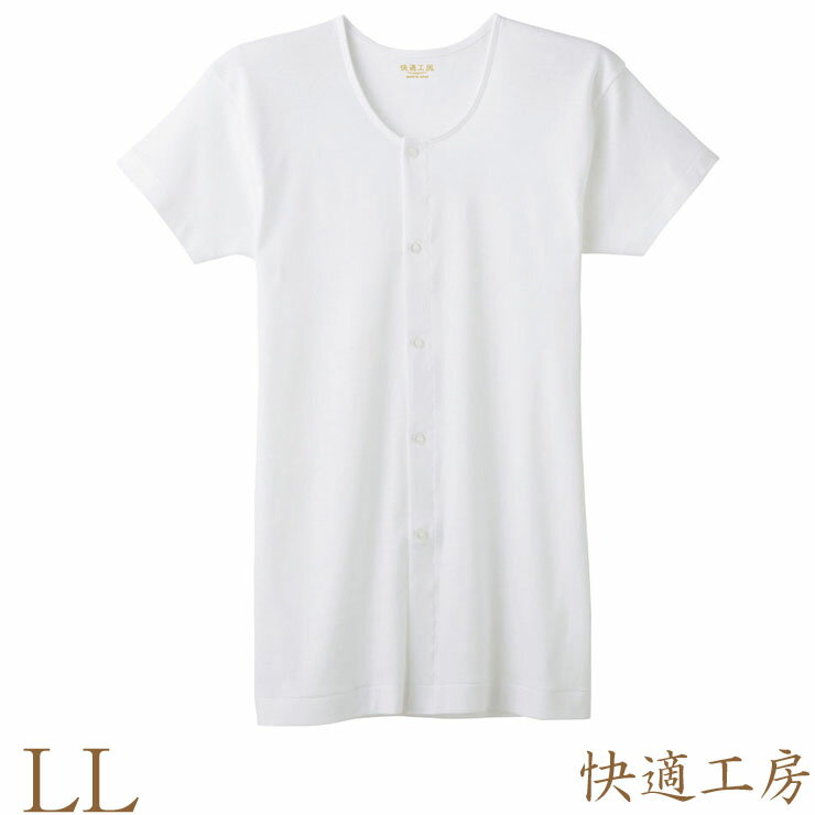 介護肌着 メンズ インナー 丸首 紳士肌着 前開きシャツ ボタン付き 入院 リハビリ ゆったり gunze グンゼ 快適工房 llサイズ 大きいサイズ