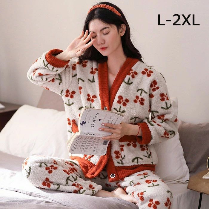 パジャマ ルームウェア レディース 上下セット レース付き 前開き 長袖 長ズボン 暖かい 部屋着 秋冬 もこもこ ふわふわ リラックス きれいめ おしゃれ