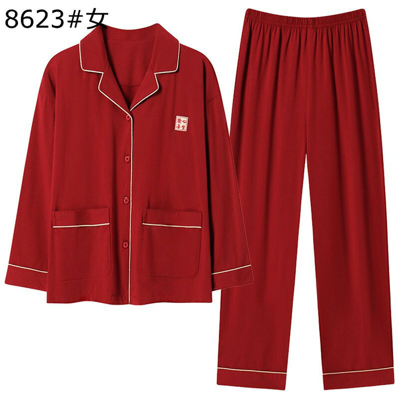 春秋向き レディース パジャマ ルームウェア コットン 薄手 肌触り 快適 長袖 ロングパンツ 上下セット カジュアル 2点セット 部屋着 寝巻き お風呂上り 通気性 大きいサイズ 赤
