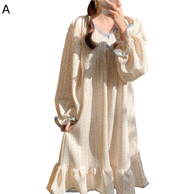 花柄 ルームワンピース 長袖 レース リボン フリル ヴィンテージ ワンピースパジャマ ルームウェア 寝巻き かわいい おしゃれ 吸湿 ゆったり 便利服 快眠 四季通用 お風呂上がり 冷房対策 防寒