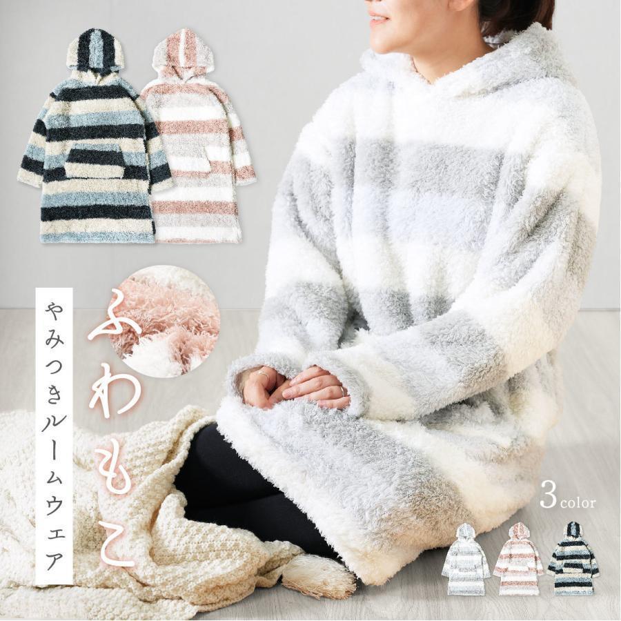 ルームウェア もこもこ プードルシャギー パーカーワンピース レディース チュニック あったか 暖かい 防寒 長袖 プルオーバー パーカー ワンピ パ