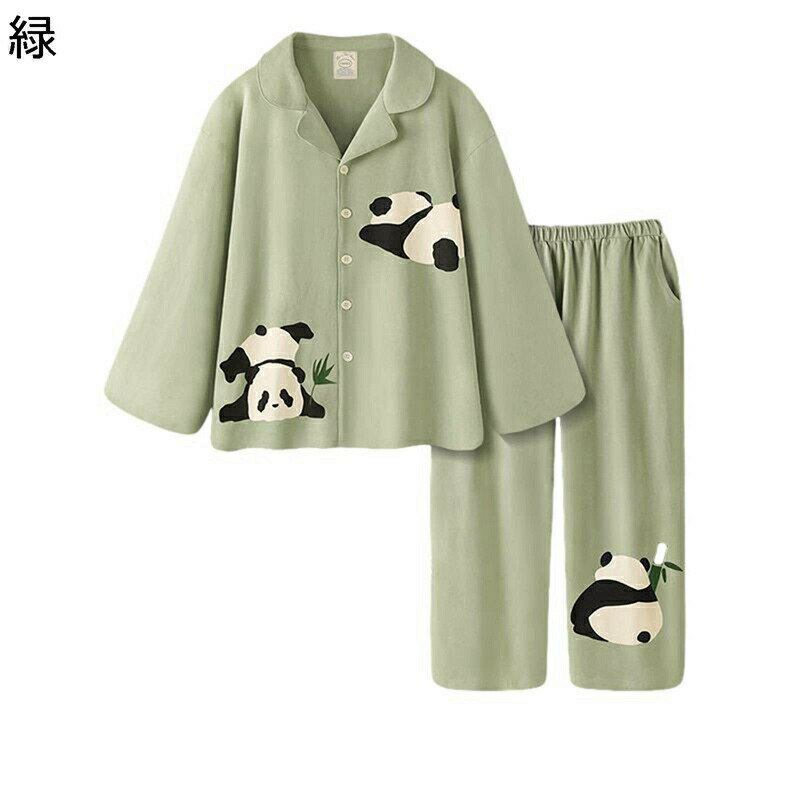 パジャマ セットアップ クマ柄 パンダ柄 レディース コットン100% かわいいパンダ 春 夏 秋 冬 ルームウェア 寝間着 ロングパンツ シャツ 着やせ 柔らかい 柔軟 日常 萌え萌え カジュアル 婦人服