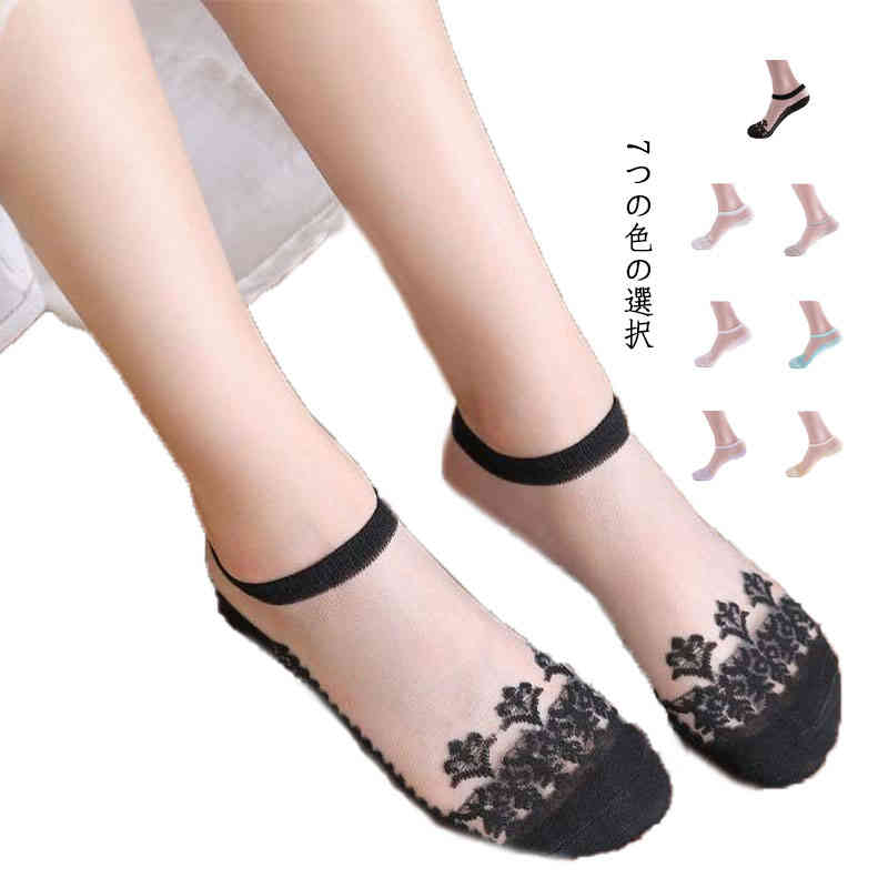 送料無料 ソックス レース ショートソックス レディース フットカバー シースルー カバーソックス 脱げにくい