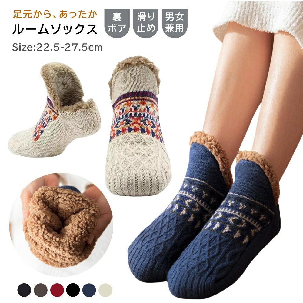 送料無料!男女兼用 様々なシーンで活躍:在宅勤務、オンライン授業、リラックスタイムや、お部屋でのスリッパ代わりに暖か裏地ボアのルームソックスが登場しました!