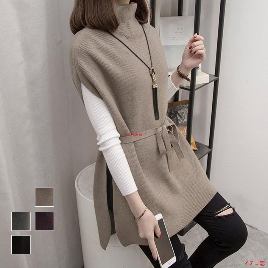 ノースリーブ ニットチュニック 韓国風