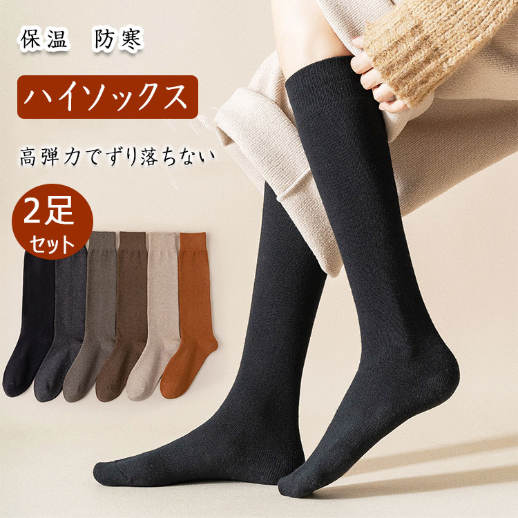 【送料無料】ロングソックス 女の子 ハイソックス 2足セット 厚手タイプ 暖か 保温 冷え対策 ふくらはぎを優しく包む 美脚ソックス 女子学生 かわいい おしゃれ プレゼント