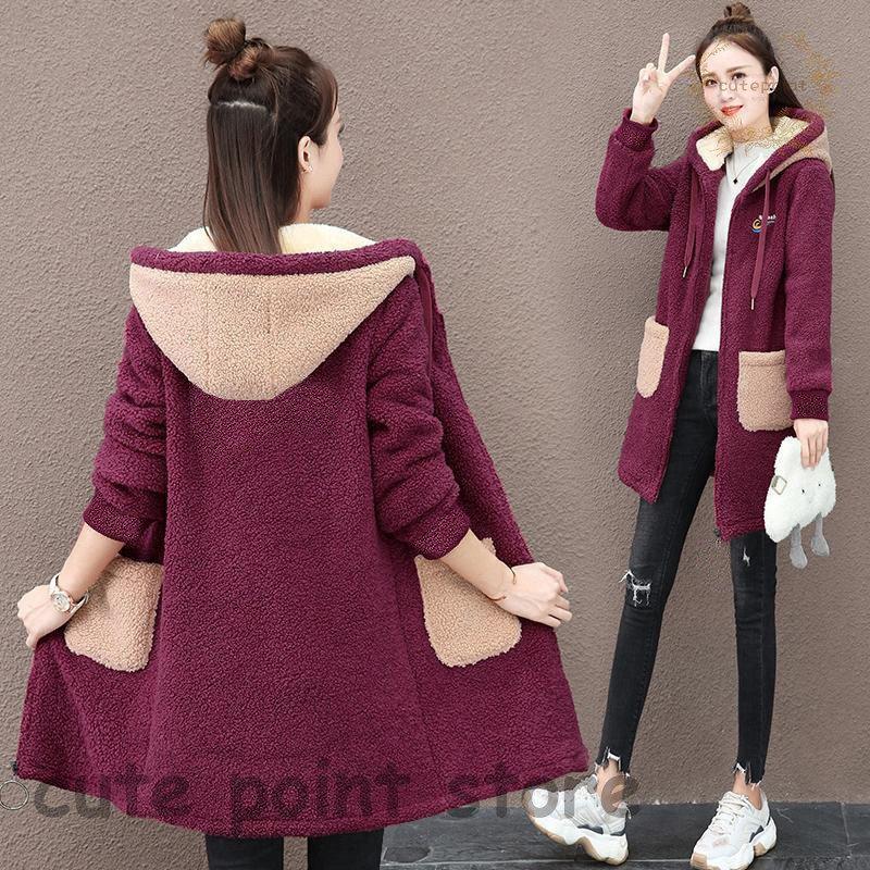 モコモコ パーカー レディース ロング丈 フード付き スウェット ジップアップ トレーナー ライトアウター 秋冬 裏ボア ゆったり カジュアル 前開き