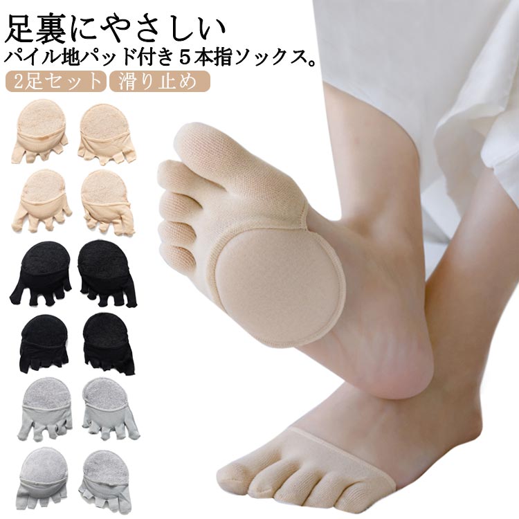 5本指 パッド付 インナーソックス つま先クッション 靴下 足裏パッド付 パンプス ハイヒール サンダル ソックス 伸縮 足裏