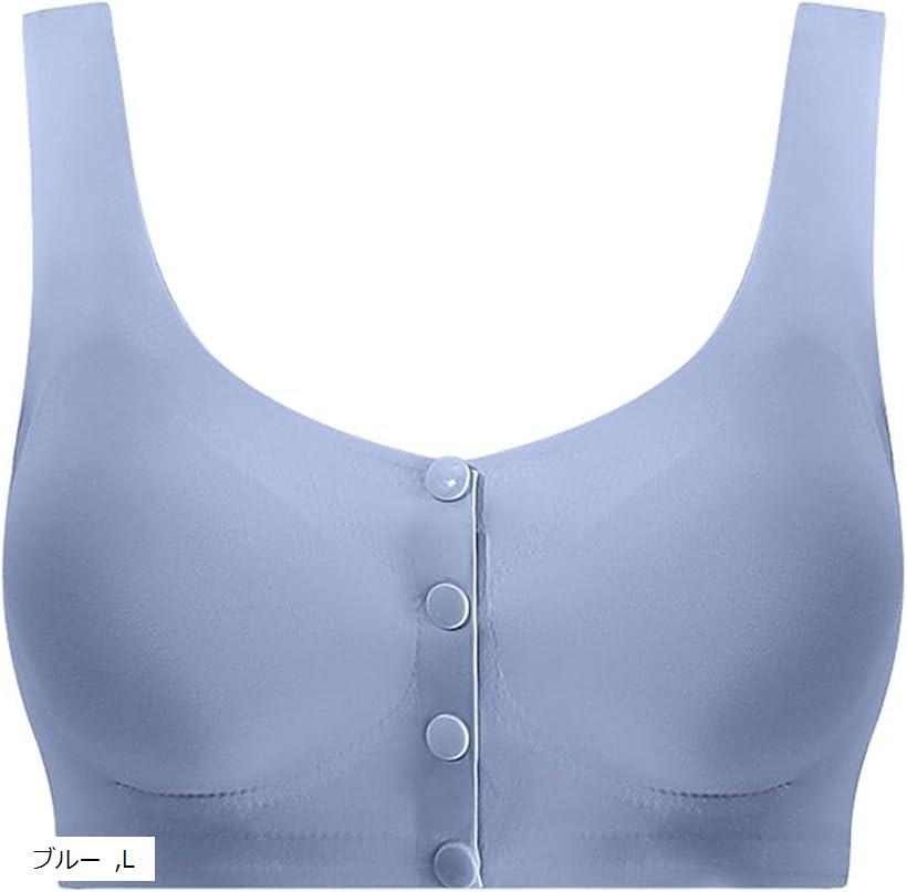 前開き 乳がん用ブラジャー 乳癌 パッド 全摘 手術後 人工乳房用 (ブルー, L)