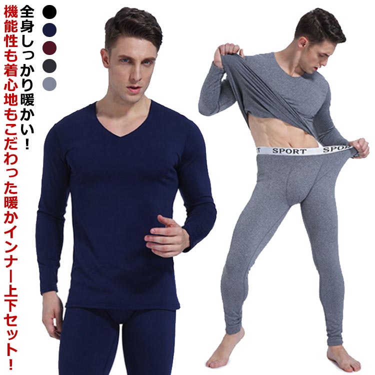 ヒートテック 防寒着 メンズ Vネック インナーウェア あったかインナー 大きいサイズ 保温インナー インナー上下セット 肌着 秋冬 春 アンダーシャツ ボトムス